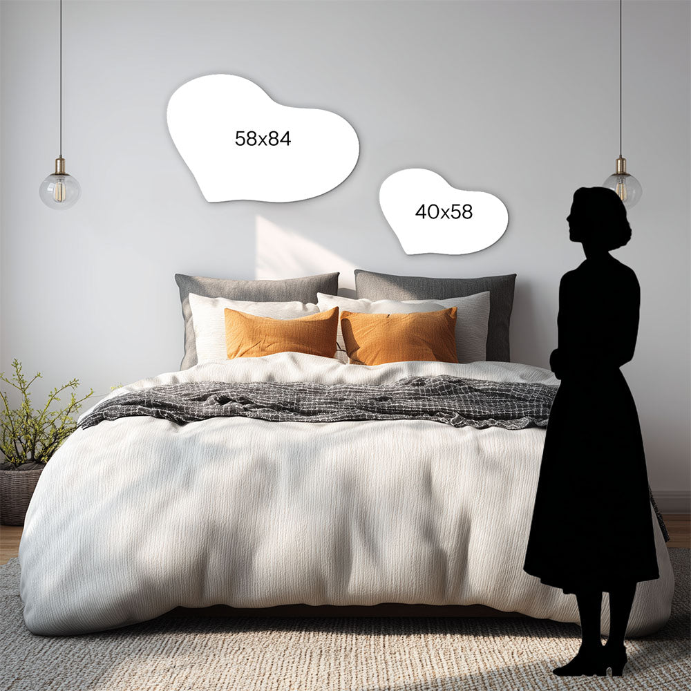 Disponibile nelle misure 48x58 cm e 58x84 cm, si adatta con equilibrio sopra il letto matrimoniale o singolo, diventando il punto focale della parete.