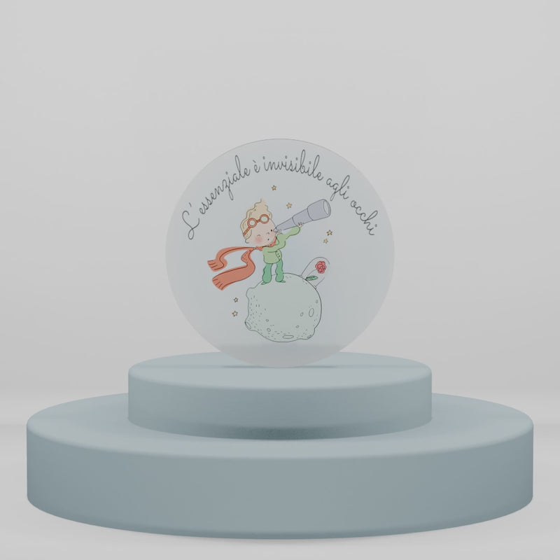 Realizzato in legno ingegnerizzato di alta qualità, questo magnete presenta una forma circolare con un diametro di 4,5 cm, ideale per impreziosire qualsiasi superficie magnetica. L'illustrazione del Piccolo Principe con il suo telescopio, immerso tra le stelle, dona un tocco poetico e nostalgico che conquista grandi e piccini.