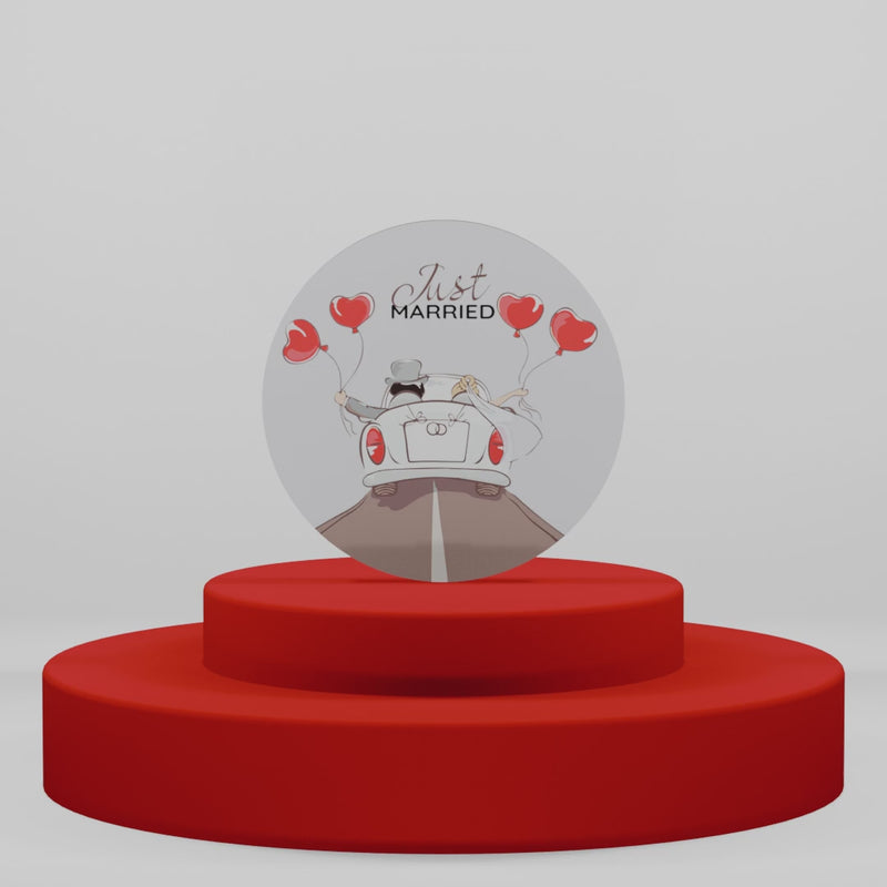 Celebra il tuo giorno speciale con il magnete "Just Hearts", un calamita bomboniera dal design romantico e raffinato. Questo delizioso accessorio decorativo raffigura un'auto vintage adornata con palloncini a forma di cuore rossi e la scritta "Just Married", perfetta per commemorare matrimoni e anniversari in modo originale.