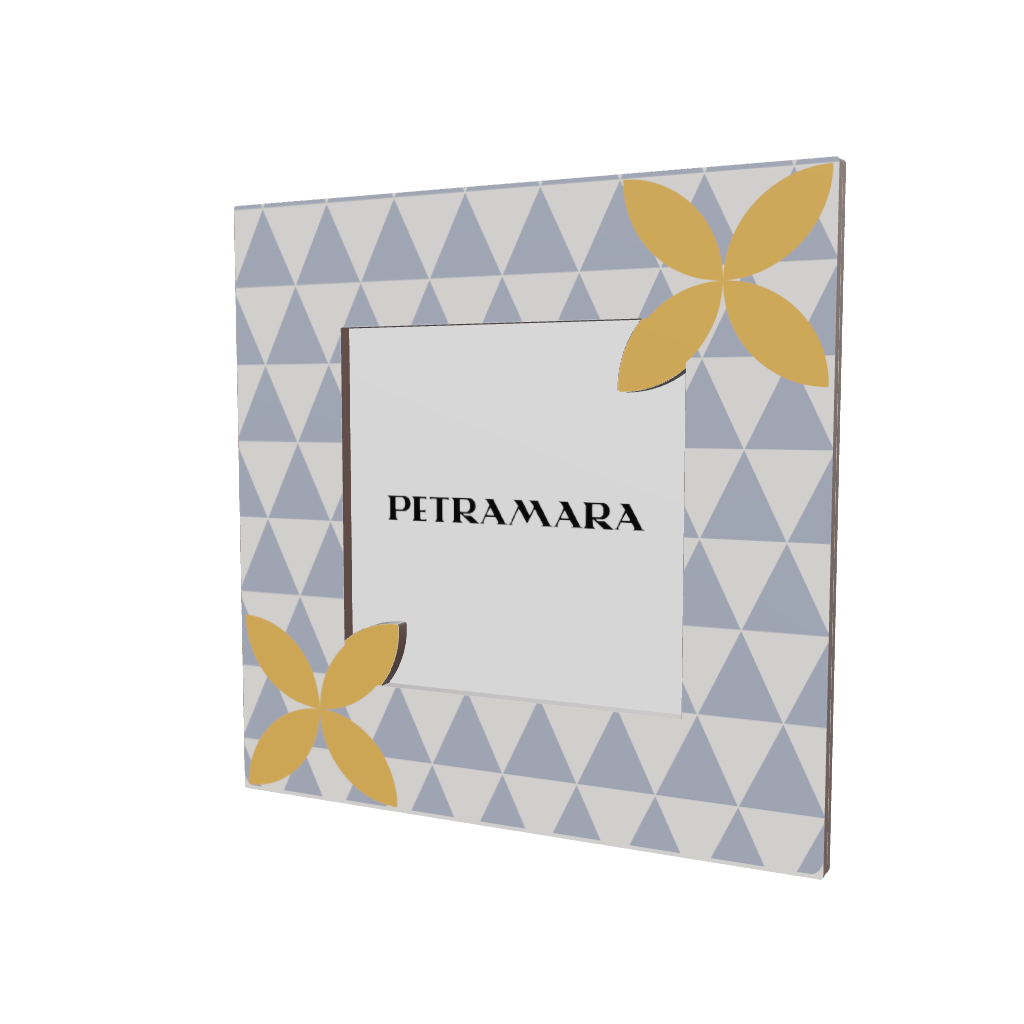 Portafoto in legno "Fiori e Trame Azzurro" - Pattern Geometrico Triangoli e Fiori Stilizzati