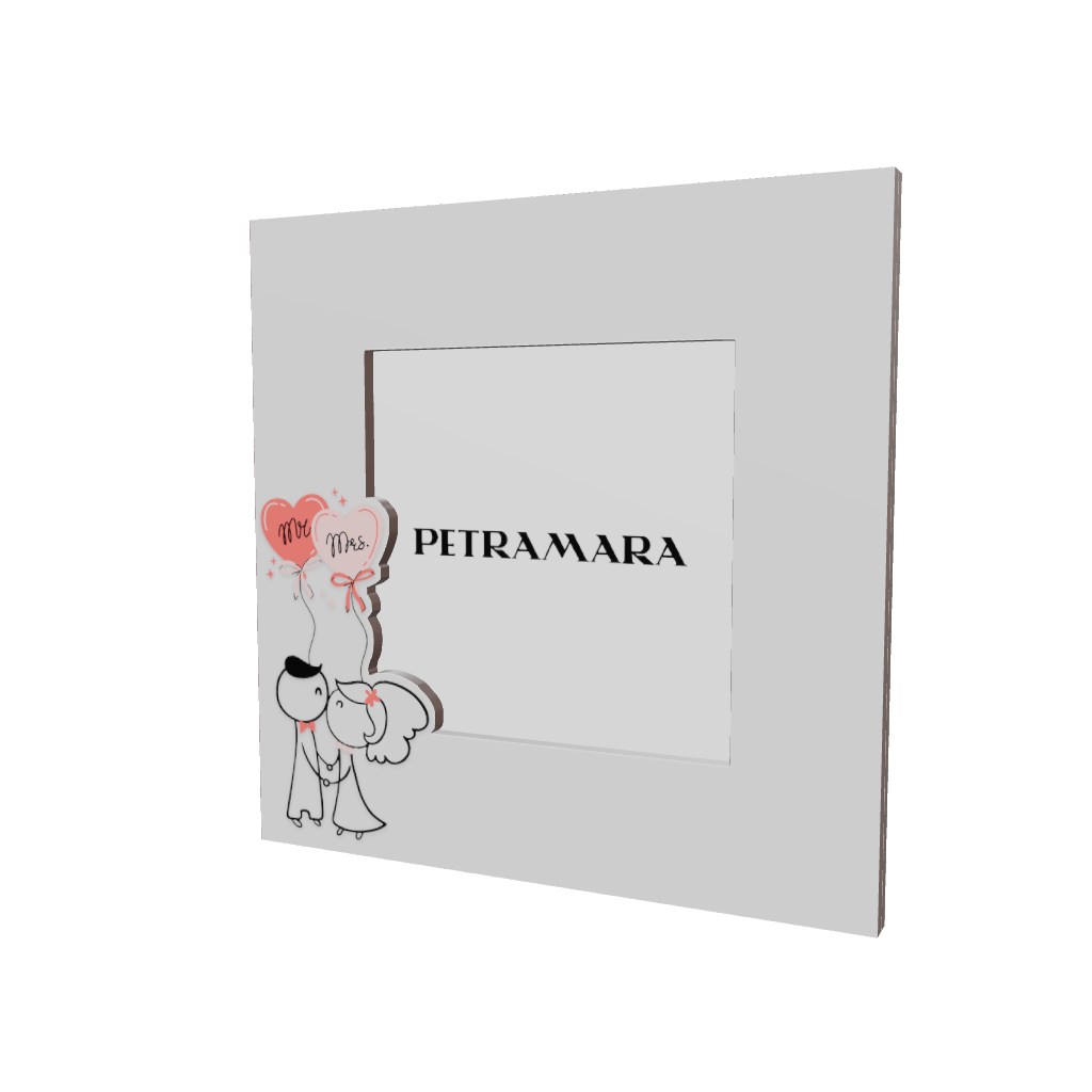 Realizzato in legno ingegnerizzato di alta qualità, questo portafotografie di design presenta una grafica minimalista con gli sposi stilizzati e i palloncini a cuore "Mr" e "Mrs" che aggiungono un tocco di dolcezza. Questa cornice è perfetta per adattarsi ad ogni ambiente, dal salotto al comodino, integrandosi armoniosamente con qualsiasi arredamento.