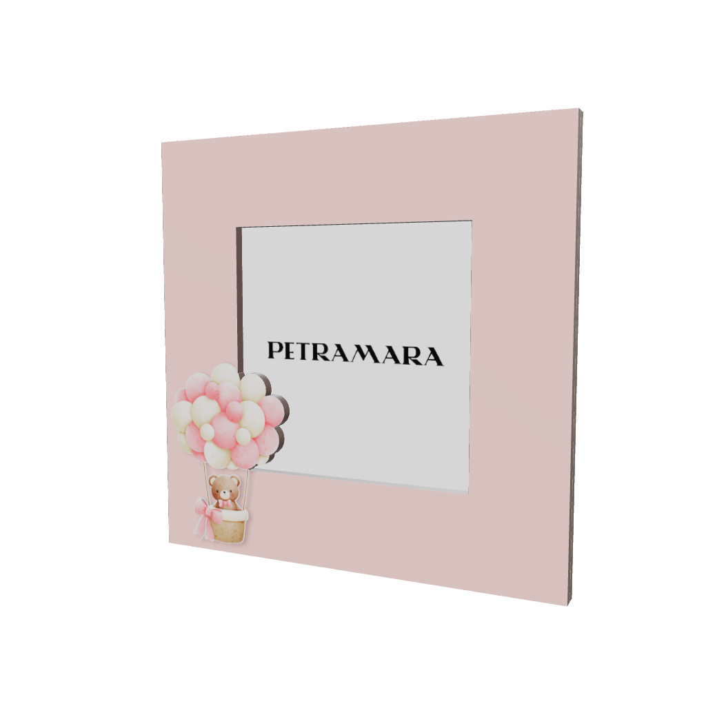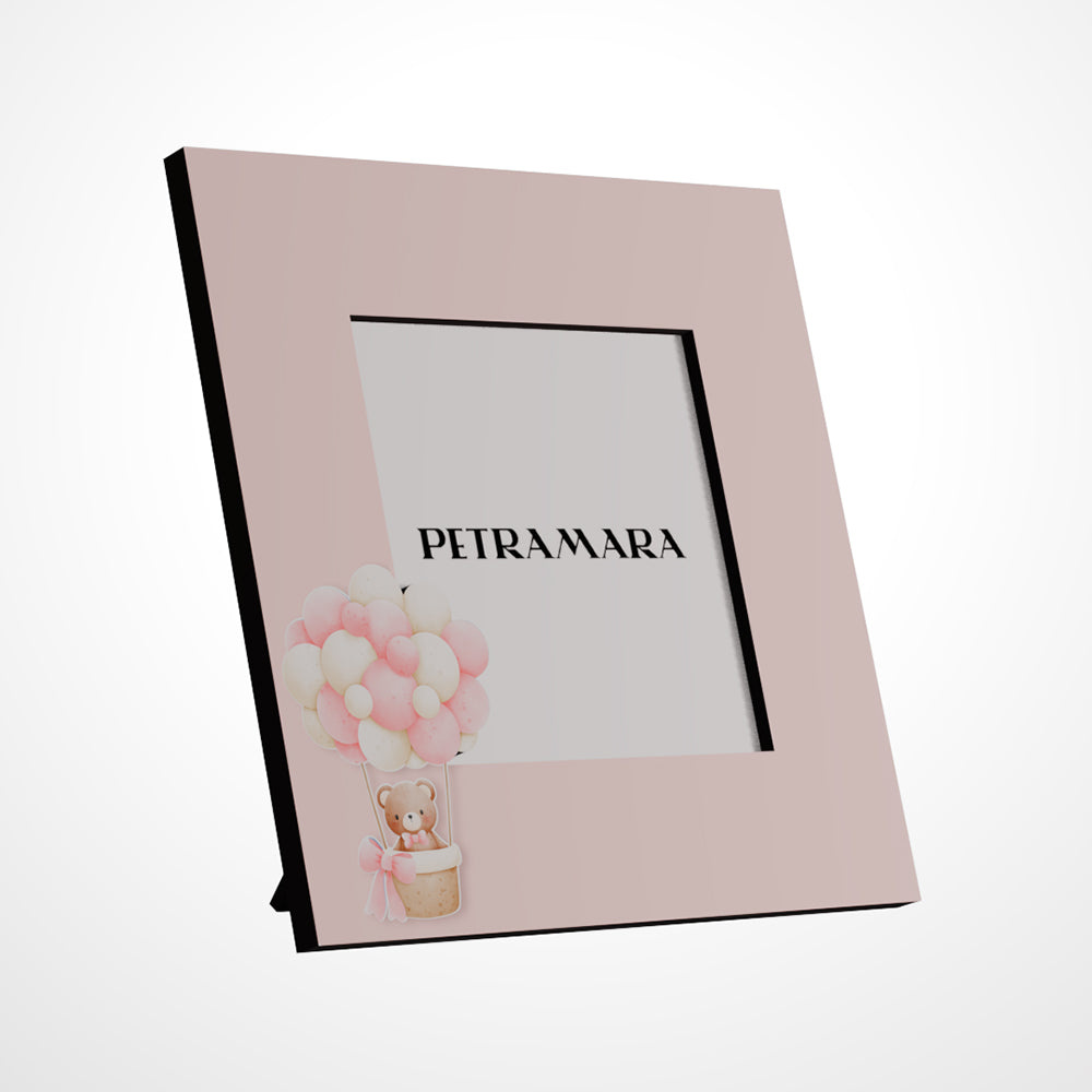 Portafoto in legno “Teddy Balloon Rosa” - Orsetto in Mongolfiera con Palloncini Rosa